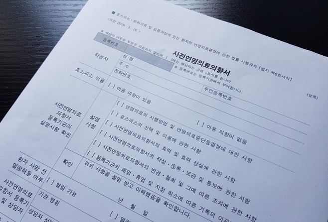 사전연명의료의향서 등록이 9월 말 현재 306만9천여 건으로 계속 늘어나면서 의향서 이행 건수도 계속 늘어날 것으로 예상된다.