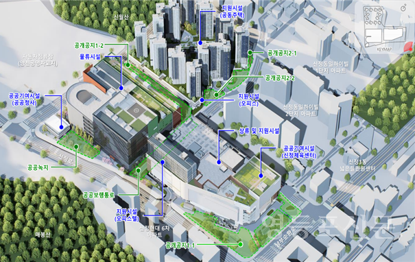 아울러 지역 경관개선을 위해 매봉산, 신월산 등 주변 지형과 연계되는 스카이라인을 형성하고 사업지 주변 도로 확장(1~3차로), 오리로 북단 단절도로 신설 등 교통 인프라도 확충해 시민 편의도 높인다.