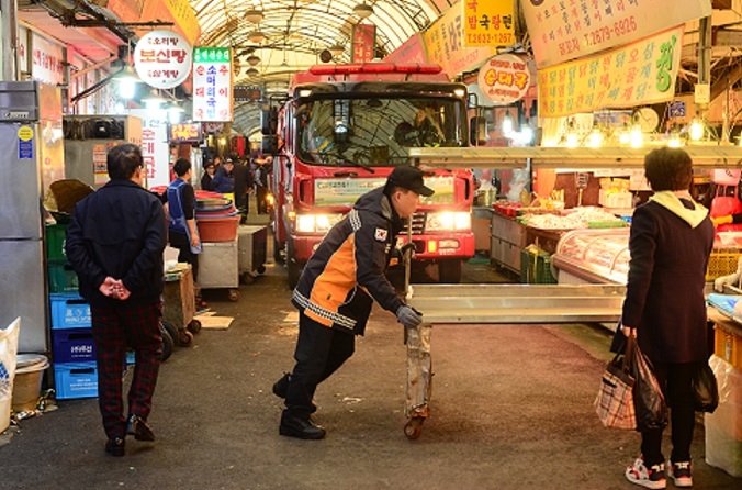 [영등포신문=장남선 주부기자] 영등포소방서(서장 이귀홍)는 15일 오후 영등포시장 상인회와 함께 영등포 전통시장에 대한 소방통로 확보 훈련을 실시했다.