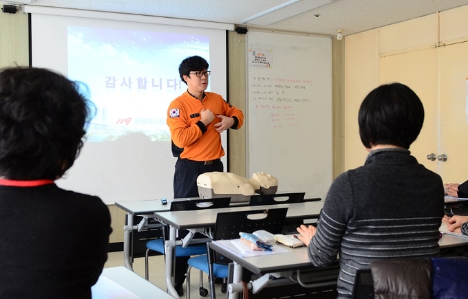 이날 교육은 화재발생시 초기대응의 중요성과 건물 내에서 화재발생시 대피훈련 소화기 및 옥내소화전 사용법, 소화전 및 비상화장치함을 점유하여 화재진압 훈련, 4분의 기적‘심폐소생술’등을 실시했다.