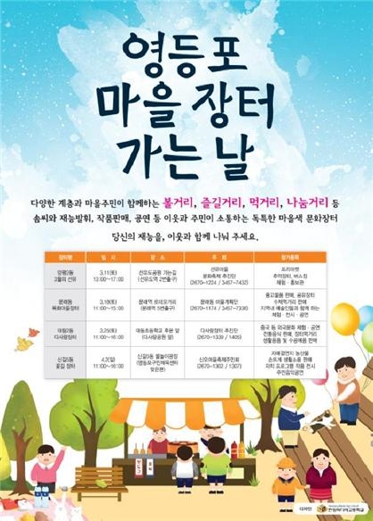 [영등포신문=신예은 기자] 영등포구 주민, 골목상인, 지역예술가들이 지역 곳곳에서 즐길 수 있는 다채로운 마을장터를 열어 주민들을 맞이한다.