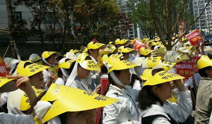 [영등포신문=김경진 객원기자] 한국유치원총연합회(이하 한유총) 소속 회원들은 18일 오전 10시 서울시교육청 앞에서 '누리과정 지원금법 개정 안건 철회'를 촉구하는 항의 시위를 벌였다.