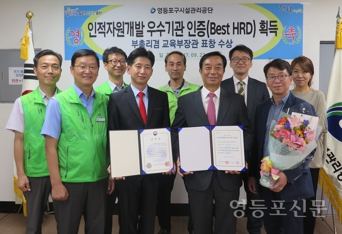 [영등포신문=신예은 기자] 영등포구시설관리공단(이사장 고현순)이 ‘2017년 공공부문 인적자원개발(Best HRD) 최우수기관’으로 선정됐다.