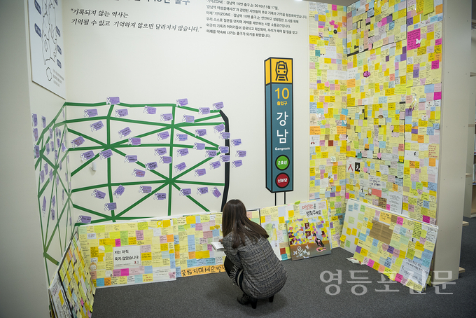 서울시여성가족재단은 ‘강남역 여성 살해사건’에 관련한 시민들의 추모 메시지(35,350건)와 관련 미디어 자료, 시민활동자료 등을 기록·공유하고, 재단 2층 성평등도서관 ‘여기’에 ‘강남역 10번 출구’를 형상화한 ‘시민 기억 존(zone)’을 조성해 관련 추모자료를 전시·보존하고 있다.