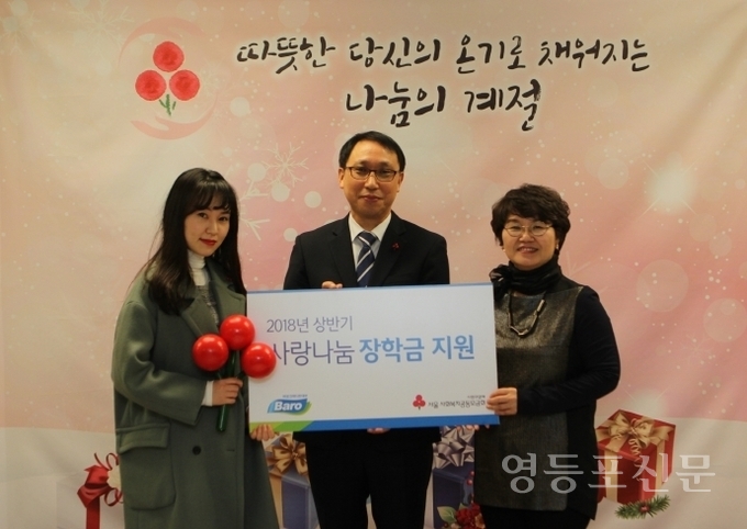 [영등포신문=신예은 기자] 바로크레디트대부는 지난 7일 오전, 서울시 중구에 위치한 사랑의열매회관에서 서울 사회복지공동모금회(회장 윤영석, 이하 서울 사랑의열매)에 교육 사각지대 대학생들을 위한 2018년 상반기 바로바로론 ‘사랑나눔 장학금’을 전달했다.
