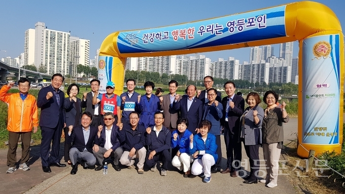 [영등포신문=신예은 기자] 제24회 영등포 구민의 날을 기념하고 제100회 전국체전 성공개최를 다짐하는 ‘구민과 함께하는 안양천건강걷기대회’가 29일 오전 안양천 신정교 아래 운동장에서 열렸다.