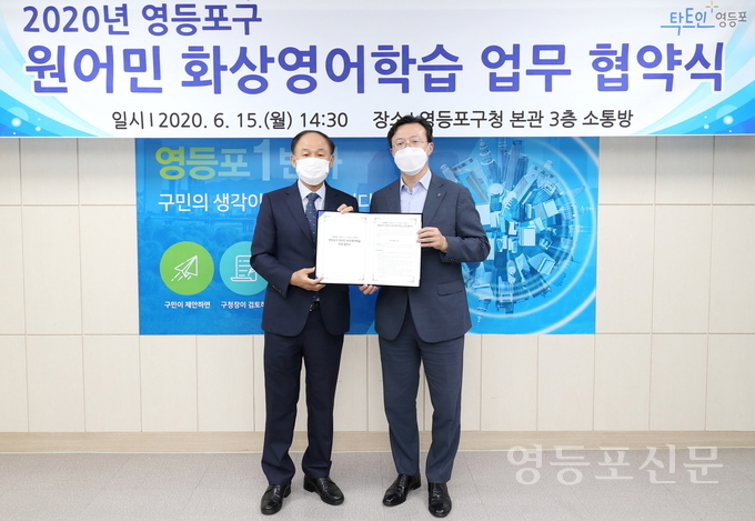[영등포신문=이천용 기자] 영등포구가 ‘2020년 영등포구 원어민 화상영어학습’ 대상 및 지원 혜택을 확대하며 더 많은 구민들을 위한 영어학습 기회의 문을 활짝 연다. 구는 온라인 화상 영어학습 운영업체 ㈜이앤오즈와 협약을 맺고, 이앤오즈에서 제공하는 화상학습시스템을 통해 숙련된 원어민 강사가 진행하는 수준별 수업을 구민들이 보다 할인된 가격으로 수강할 수 있도록 한다.