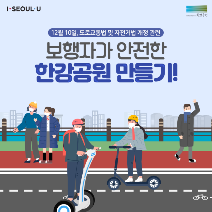 [영등포신문=이천용 기자] 오는 10일, 도로교통법과 자전거 이용 활성화에 관한 법률이 개정됨에 따라 한강공원 내 자전거도로에서도 전동 킥보드 등 개인형 이동장치(이하 PM, Personal Mobility)의 운행이 가능해진다.
