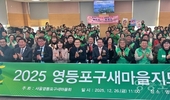 [영등포신문=이천용 기자] 영등포구새마을회(회장 구춘회)는 26일 오전 영등포구청 별관 5층 강당에서 ‘2025 영등포구새마을지도자대회’를 개최했다. 이날 대회는 사랑의 밑반찬 만들기, 집 고쳐주기, 방역소독활동 등 다양한 활동을 펼쳐 지역사회 발전을 견인해온 2025년 한 해 동안의 성과를 돌아보고 2026년 새로운 도약을 다짐하기 위해 마련됐다. 구춘회 회장과 최호권 구청장을 비롯해 신흥식 더불어민주당 영등포을 지역위원장 직무대행, 김재진·김종길·김지향 서울시의원, 구의회 양송이 행정위원장, 유승용·김지연·이순우·이성수 의원, 윤준용·고기판 전 구의회 의장, 마포·도봉·중구지회장 등도 함께하며 영등포구새마을지도자들을 격려했다. 천국천 운영위원장의 사회로 진행된 가운데 지난 한 해 동안 근면·자조·협동의 정신으로 밝고 건강한 사회를 만들기 위해 노력한 새마을지도자들의 활동을 담은 영상을 시청했다. 이어 최호권 구청장과 구춘회 회장 및 내빈들이 새마을포장(이선숙 영등포구새마을부녀회장), 대통령 표창(양평2동새마을부녀회 황맹덕), 봉사대상(신길3동부녀회 임순일), 30년 기념장(대림3동부녀회 김경자)을 비롯해 지역사회 발전과 새마을운동에 기여한 공로를 인정받은
