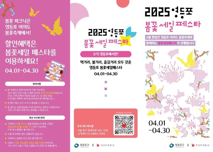 ‘봄꽃 할인 행사’는 8일부터 12일까지 열리는 여의도 봄꽃축제와 연계해 4월 1일부터 30일까지 진행된다. 봄꽃의 아름다움과 함께 지역 맛집, 카페 등에서의 특별 할인 혜택을 더해 봄꽃축제를 더욱 풍성하게 즐길 수 있도록 한다.