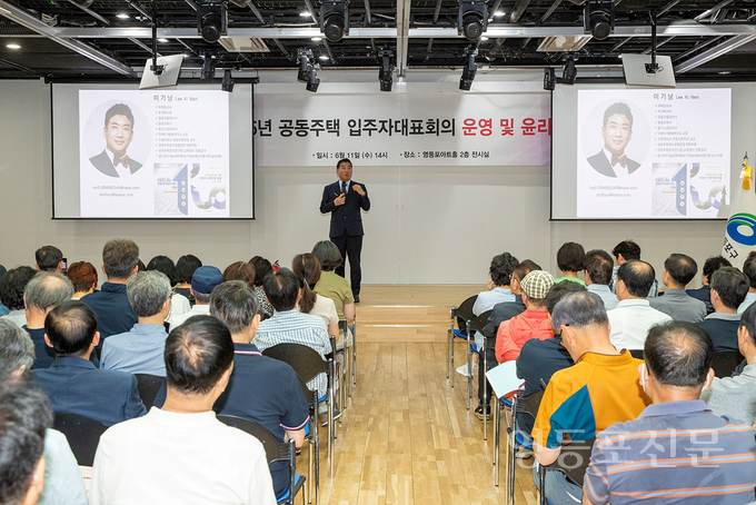 이날 교육에는 관내 공동주택 동별 대표자 및 입주자 등 약 300명이 참석한 가운데 이기남 수원대학교 부동산학 전공 교수가 강사로 나서 ▲입주자대표회의 구성 및 운영 ▲윤리 교육 ▲장기수선계획․장기수선충당금 관련 사항 ▲공동주택관리법령 및 관리규약 제․개정 사항 ▲주택관리업자 선정 지침 ▲층간 소음 생활수칙 등 동 대표자로서 갖춰야 할 기본 사항과 간과하기 쉬운 내용들에 대해 알기 쉽게 전달했다.