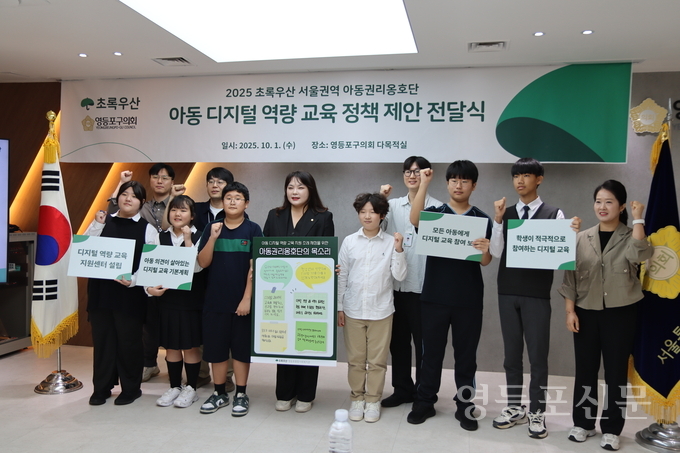 [영등포신문=변윤수 기자] 초록우산 영등포종합사회복지관 아동권리옹호단은 10월 1일, 영등포구의회 3층 다목적실에서 영등포구의회 차인영 의원(현 사회건설위원장, 신길4·5·7동)과 함께 ‘아동 디지털 역량 교육 정책 제안 전달식’을 진행했다.