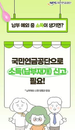 특히, 장애 또는 유족연금 혜택을 받지 못할 수도 있으니 꼭 가까운 공단 지사를 방문하거나 국민연금 고객센터(국번없이 1355, 유료)로 연락해 소득신고를 해야 한다.