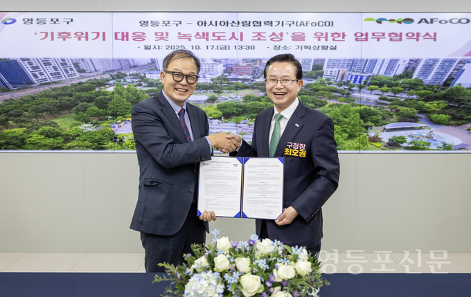 [영등포신문=곽재근 기자] 최호권 영등포구청장이 10월 17일 오후, 구청 기획상황실에서 아시아산림협력기구(AFoCO)와 ‘기후위기 대응과 녹색도시 조성’을 위한 업무협약을 체결했다.