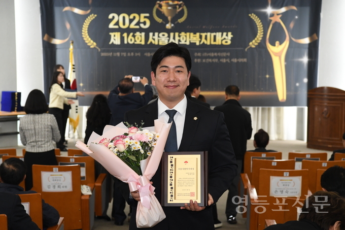 [영등포신문=변윤수 기자] 영등포구의회 전승관 의원(더불어민주당, 영등포동·당산2동)이 7일 오후 3시 서울시청 별관 후생동에서 개최된 ‘2025 제16회 서울사회복지대상’에서 대회장상을 수상했다.