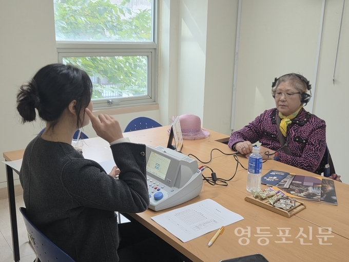 이번 무료검사는 신길종합사회복지관 경로식당을 이용하는 어르신 40명을 대상으로 진행됐으며, 자가검진 교육과 전문 검사기구를 활용한 청력·난청검사로 구성됐다.