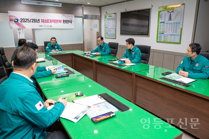 [영등포신문=이천용 기자] 영등포구는 지난 14일 오후 구청 본관5층 방재종합상황실에서 2025/26년 제설대책본부 현판식을 갖고, 폭설로부터 구민의 생명과 재산을 지키기 위한 제설대책을 본격 가동했다.