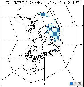 눈·비가 예상되는 서쪽과 달리 강원동해안과 경북북부동해안은 당분간 대기가 건조하겠다.