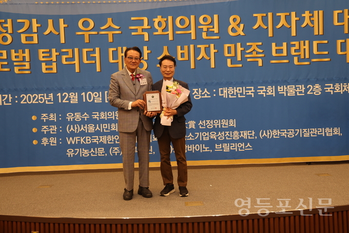 [영등포신문=변윤수 기자] 김정태 전 서울시의회 운영위원장이 지난 10일, 글로벌 탑리더 대상 지자체 의정부분 대상을 받았다.