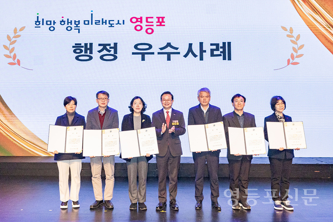 이어 개식 및 국민의례 후 최호권 구청장은 응답소 현장민원 최우수 부서인 주차문화과, 2025년 행정우수사례 경진대회에서 우수한 성적을 거둔 대림2동·도시안전과·생활보장과·대림1동·청소과·일자리경제과), 청렴우수부서 4곳(재무과·교통행정과·부동산정보과·당산2동), 동행정품질평가 우수 7개동(양평2동·당산2동·대림3동·영등포본동·도림동·신길5동·여의동), 올해의 공무원 10명(청년정책과 최나연·문화체육과 익규복·홍보미디어과 김태욱·재산세과 황귀현·환경과 강중희·교통행정과 김대현·재개발사업과 신진희·건강증진과 김은숙·신길제3동 강혜선·대림제3동 전형진)에게 상장 및 표창을 각각 수여했다.