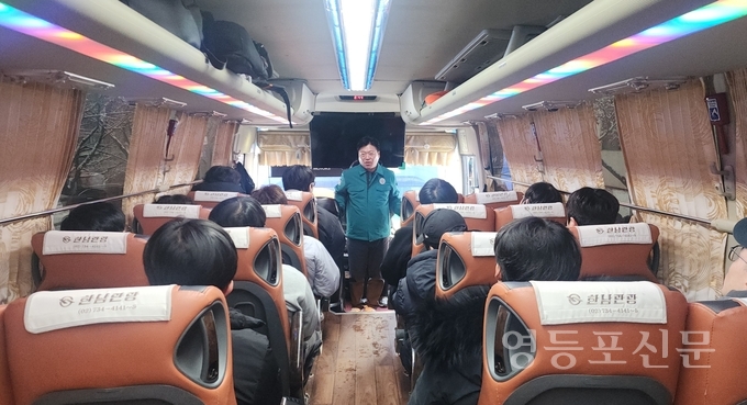 [영등포신문=나재희 기자] 서울지방병무청(청장 문경식)은 2월 2일 오전 8시 40분, 사회복무요원 교육생 단체 수송이 실시 되는 청사 내 교육생 집결 현장에서 안전관리 실태를 점검했다.