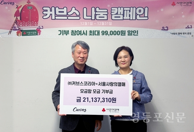 [영등포신문=곽재근 기자] 서울 사회복지공동모금회(회장 김재록, 이하 서울 사랑의열매)는 여성 피트니스 브랜드 ㈜커브스코리아(대표이사 김운용)가 ‘커브스 나눔 캠페인’을 통해 모은 성금 약 2천1백만 원을 기부했다고 밝혔다.