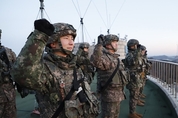 [영등포신문=신민수 기자] 1일 오전 경기도 파주시 오두산 통일전망대에서 열린 임진강 수호 결의대회에서 육군 9사단 임진강대대 장병들이 신년 일출을 바라보며 군사대비태세 확립을 결의하고 있다.