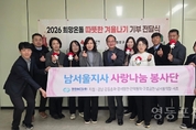 [영등포신문=곽재근 기자] 한전MCS(주)남서울지사(지사장 김도원) 사회봉사단은 연말을 맞이해 저소득층 가정과 복지 사각지대 이웃을 지원하기 위하여 영등포구청 복지정책과 와 연계해 ‘희망온돌 따뜻한 겨울나기’ 성금 후원 및 성품 전달을 했다. 이날 영등포구청에서 열린 전달식에는 장외경 복지정책과장, 한전MCS(주)남서울지사 김도원 봉사단장 및 강남지점, 강동송파지점, 강서양천지점, 관악동작지점, 구로금천지점, 서초지점 지점장이 참석했다. 전달된 기부금은 어려운 이웃들의 생계비, 의료비 지원 등에 사용될 예정이며, 후원 물품은 따뜻한 겨울을 보낼수 있도록 관내 어려운 가정에 전달될 예정이다. 장외경 영등포구 복지정책과장은 후원해준 봉사단에게 어려운 시국에 따뜻한 이웃사랑 실천에 감사의 인사를 전하며 “지역 내 저소득 주민지원과 추운겨울을 힘들게 준비해할 어려운분들께 잘 전달될 수 있게 하겠다”고 밝혔다. 이번 한전MCS(주)남서울지사 사회봉사단은 관내 7개 지점이 함께 뜻을 모았으며 모두가 행복한 사회를 만들기 위해 따뜻한 봄 같은 이웃사랑 실천에 앞장서겠다는 뜻을 전했다.