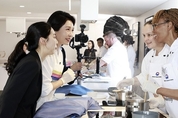 [영등포신문=변윤수 기자] 김혜경 여사가 22일(현지시간) 남아프리카공화국 요하네스버그 주남아공한국문화원에서 열린 한-남아공 음식문화 만남 행사에서 한식 조리 체험 참가자와 이야기하고 있다.
