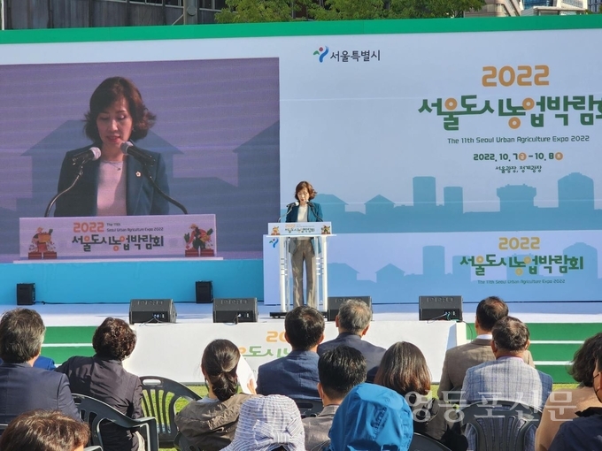 [영등포신문=이천용 기자] 서울시의회 이숙자 기획경제위원장(국민의힘·서초2)은 10월 7일 ‘제11회 서울도시농업박람회 개회식’ 축사에서 그간 서울도시농업정책의 성과를 치하하고, 시민여가 활성화 뿐만 아니라 미래먹거리 산업으로 자리매김할 수 있도록 서울시의 적극적인 역할을 당부했다.