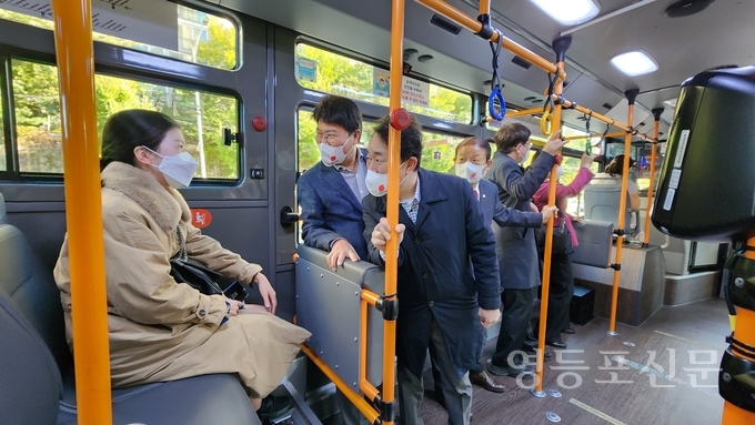 [영등포신문=이천용 기자] 국민의힘 영등포을 당원협의회 박용찬 위원장과 소속 서울시의회 도문열·김지향 의원, 영등포구의회 차인영·이성수·우경란 의원은 지난 17일 신길뉴타운을 통과하는 시내버스 6713번의 시승식을 했다.