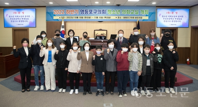 [영등포신문=이천용 기자] 영등포구의회(의장 정선희)는 지난 10월 18일부터 11월 8일까지 영등포구의회 본회의장에서 ‘2022년도 하반기 청소년 모의의회’를 개최했다.