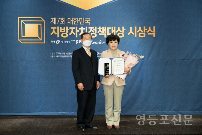 [영등포신문=이천용 기자] 영등포구의회 정선희 의장이 지난 9일 여의도 켄싱턴호텔에서 열린 ‘제7회 대한민국 지방자치정책대상’에서 의정부문 최우수상을 수상했다.