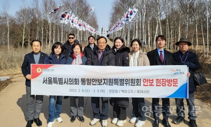 [영등포신문=이천용 기자] 서울시의회 통일안보지원특별위원회(위원장 김형재)는 지난 2월 8일부터 9일까지 경기도 파주시에 위치한 판문점과 백마고지전적지(철원)등 통일안보 시설 현장방문을 실시했으며, 인근 군부대(태풍전망대)를 찾아 서울시의회(의장 : 김현기) 위문금을 전달하고 국군장병들의 노고에 감사를 표했다.