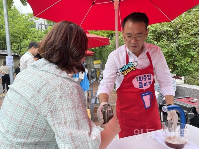 [영등포신문=이천용 기자] 서울시의회 환경수자원위원회 김재진 의원(국민의힘, 영등포구1)은 6월 28일 기후환경본부의 텀블러 사용 생활화를 위한 ‘정동길 텀블러데이’에 참여했다.