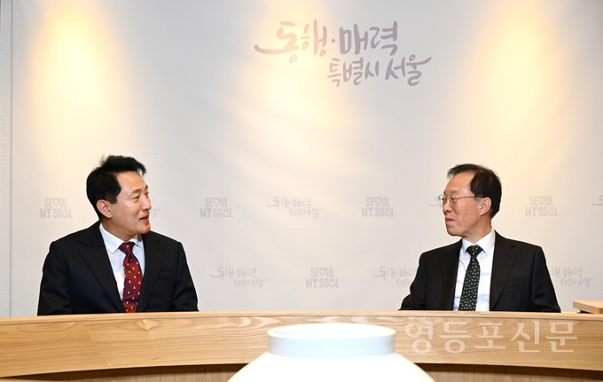 [영등포신문=곽재근 기자] 오세훈 서울시장이 22일 오후 서울시청 6층 집무실에서 이석연 국민통합위원회 신임 위원장을 만나 다양한 협력 방안을 논의했다. 이번 면담은 이석연 위원장이 지난달 15일 국민통합위원회 위원장으로 취임한 후 첫 자치단체장 면담일정이다.