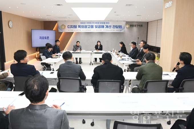 이날 간담회에는 영등포구의회 양송이 행정위원장과 신흥식 의원을 비롯해 여의도 금호리첸시아 비상대책위원회 심향이 대표, 행정안전부·서울시청·영등포구청 관계 공무원, 한국옥외광고센터, 광고물 운영 업체, 전문가 등이 참석하했다.