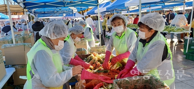 [영등포신문=김경진 객원기자] 겨울철을 맞아 정성껏 김장을 담그고, 이를 지역 내 어려운 이웃에게 전달하기 위한 ‘영등포구 김장한마당 축제’가 14일 영등포공원 원형광장에서 진행됐다
