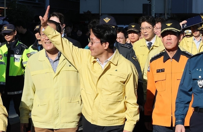 김 총리는 소방·경찰 관계자들과 광안리 해수욕장 인근을 둘러보며 다중 인파 관리 현황과 차량 통제 및 응급 의료 부스 설치·운영 상황 등을 직접 살폈다.