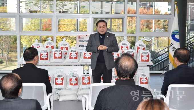 이번 행사는 문래동 소재 ㈜거목정보산업 윤석칠 대표가 관내 취약계층을 위해 10Kg 쌀 55포대를 영등포동 주민센터에 기탁하면서 마련됐으며, 박찬호 영등포동장, 강문원 주민자치위원장과 지역사회보장협의체 최오운 간사를 비롯한 지역 주민 등이 함께했다.