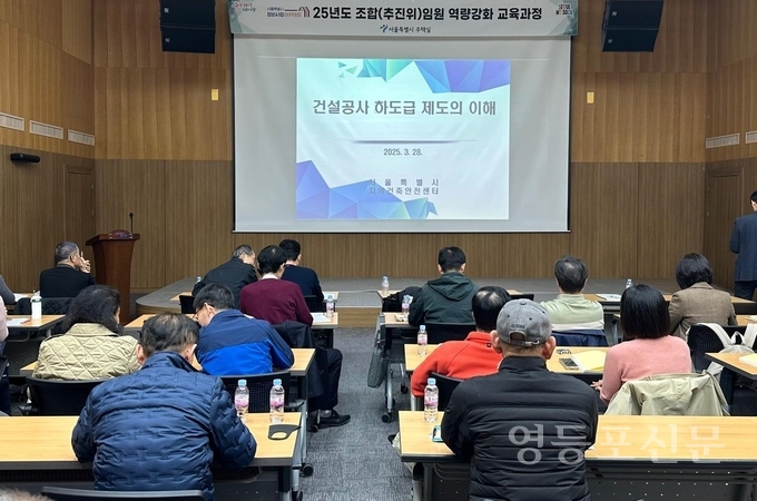 또한 시는 올해부터 정비사업조합 임원 대상 공정 하도급 인식 개선 교육을 진행해 재개발, 재건축 등 정비사업 조합에서 자발적으로 부실 공사 예방과 안전한 건설 환경을 만드는 데 선량한 관리자로서의 의무를 다할 수 있도록 안내하고 있다. 올해 3월과 8월 정비사업조합 임원을 대상으로 공정한 하도급 계약 문화 정착을 위한 ‘2025년 정비사업 아카데미 조합 임원 역량강화 교육과정’에 ‘건설공사 하도급 이해 과정’을 개설해 성황리에 교육을 마쳤다.