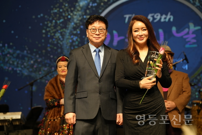[영등포신문=곽재근 기자] 노래 ‘장미단추’를 통해 많은 사람들로부터 사랑을 받고 있는 가수 김지현이 지난 21일, 경기 안양 아트센터에서 열린 ‘가수의 날’ 행사에서 최우수 인기 가수상의 영예를 안았다.