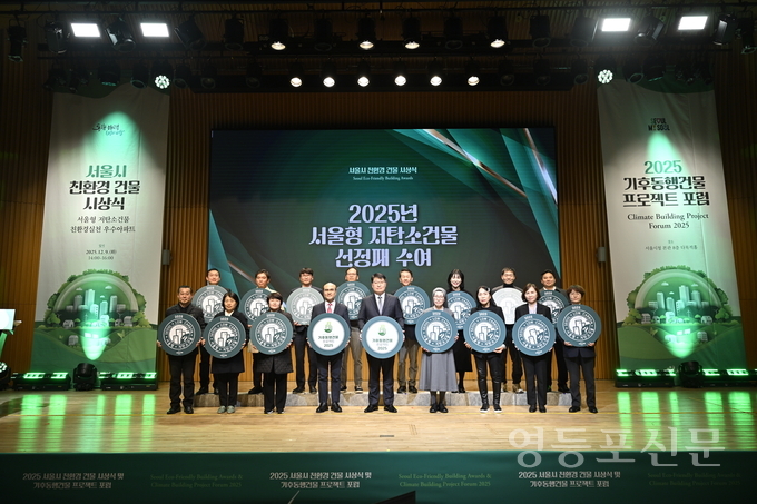 서울시는 지난 12월 9일 서울시청에서 ‘2025 서울시 친환경 건물 시상식 및 기후동행건물 프로젝트 포럼’을 개최하고, 한 해 동안 친환경 실천을 선도하며 건물 에너지 사용량이 적고 관리가 우수한 ‘서울형 저탄소건물’ 16개소와 우수아파트 26개 단지를 선정해 선정패를 수여했다.