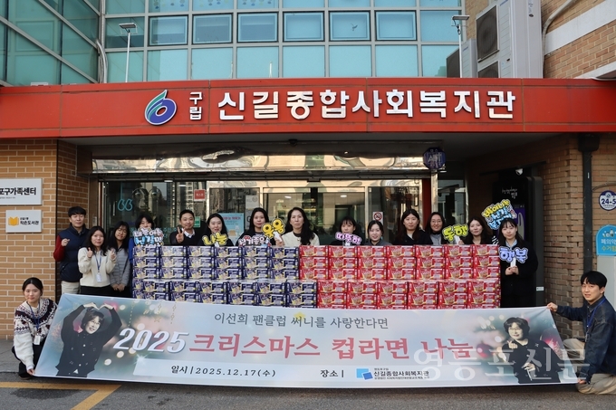 [영등포신문=곽재근 기자] 사회복지법인 대한불교조계종 봉은(대표이사 원명스님)이 운영하고 있는 신길종합사회복지관(관장 유지연)은 지난 12월 17일 오후 2시, 이선희 팬클럽 ‘써니를 사랑한다면’으로부터 컵라면 300개를 전달받았다. 이번 후원은 크리스마스와 연말을 맞아 지역사회 취약계층을 지원하기 위해 마련됐으며, 전달된 물품은 지역 내 도움이 필요한 가구에 배분될 예정이다.