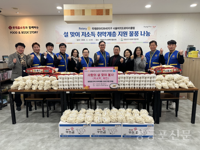 서울여의도로타리클럽은 이날 여의도 소재 켄싱턴호텔에서 585차 정기모임을 가진 후 설명절을 맞아 영등포지역 취약계층 300가정과 꿈나무의집에 떡국떡을 후원했다.