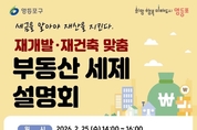 [영등포신문=변윤수 기자] 영등포구가 영등포 전역에서 87개 재개발 재건축 등 정비사업이 추진되면서 높아진 부동산 세제에 대한 관심에 부응하고자, 오는 25일 영등포 아트홀에서 ‘재개발 재건축 맞춤 부동산 세제 설명회’를 개최한다고 밝혔다. 이번 설명회에는 ‘재개발·재건축 권리와 세금 뽀개기’의 저자인 안수남 세무사가 강연자로 나서, 취득세·양도소득세 등 주요 세무 이슈를 중심으로 강의한다. 이와 함께 ▲재개발·재건축 관련 세제(입주권 등) 변화 ▲양도소득세 등 주요 세목에 대한 이해 ▲납세자가 알아야 할 사업 단계별 핵심 포인트 등을 알기 쉽게 설명할 예정이다. 참여를 희망하는 구민이라면 누구나 신청할 수 있으며, 2월 6일부터 13일까지 선착순으로 450명을 모집한다. 신청방법은 영등포구청 누리집 ‘우리구소식’ 게시판을 통해 온라인으로 신청하거나, 영등포구청 재산세과(02-2670-3251)로 전화 신청하면 된다. 한편, 구는 복잡한 정비사업에 대한 지역 주민의 이해를 돕고자 맞춤형 상담 서비스를 제공하는 ‘영등포 재개발·재건축 상담센터’ 2개소를 운영하고 있다. 상담센터는 신길5동 주민센터(1층)와 문래동 목화마을 활력소(2층)에 위치해 있으며, 평일