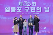 [영등포신문=이천용 기자] 영등포구는 지난 9월 24일 오후 영등포아트홀 공연장에서 ‘제30회 구민의날 기념식’을 개최하고, ‘함께 만든 30년 함께 열어 갈 영등포 대전환 시대!’라는 미래 비전을 열고 새롭게 도약하기 위한 화합과 단결을 다지는 시간을 가졌다. 구는 1946년 9월 28일 영등포가 서울시로 처음 편입된 것을 기념하기 위해 1996년부터 9월 28일을 ‘구민의 날’로 제정하고, 매년 다양한 기념행사를 개최해 구민들과 함께 영등포의 발전을 기원하고 있다. 이날 최호권 구청장과 정선희 구의회 의장을 비롯해 황무섭 대한노인회 영등포구지회장, 채현일 국회의원(더불어민주당, 영등포갑), 김영주·박용찬 국민의힘 영등포갑·을 당협위원장, 신흥식 더불어민주당 영등포을 지역위원장 직무대행, 우승희 영암군수, 시·구의원 등 주요내빈들과 구민 500여 명이 함께했다. 기념식에 앞서 영등포동풍물놀이단, 영등포구립여성합창단, 영등포꿈의오케스트라의 식전공연을 통해 ‘제30회 구민의 날’을 축하했다. 김병찬 아나운서의 사회로 진행된 가운데, ‘AI가 바라보는 영등포 대전환 시대’라는 주제의 오프닝 무대를 시작으로 최호권 구청장과 내빈들이 감사의 마음을 담아 구민들에게