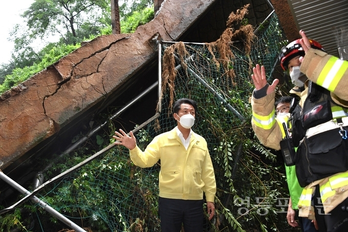 [영등포신문=이천용 기자] 오세훈 서울시장이 집중호우로 축대가 무너진 동작구 사당동 극동아파트 현장을 방문했다.
