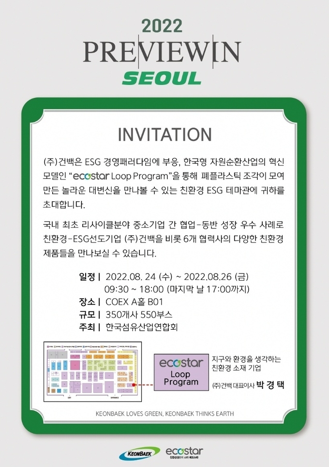 건백과 에코스타 루프 프로그램 협력기업의 제품들은 PIS 2022 내 B01 부스에서 만날 수 있다.