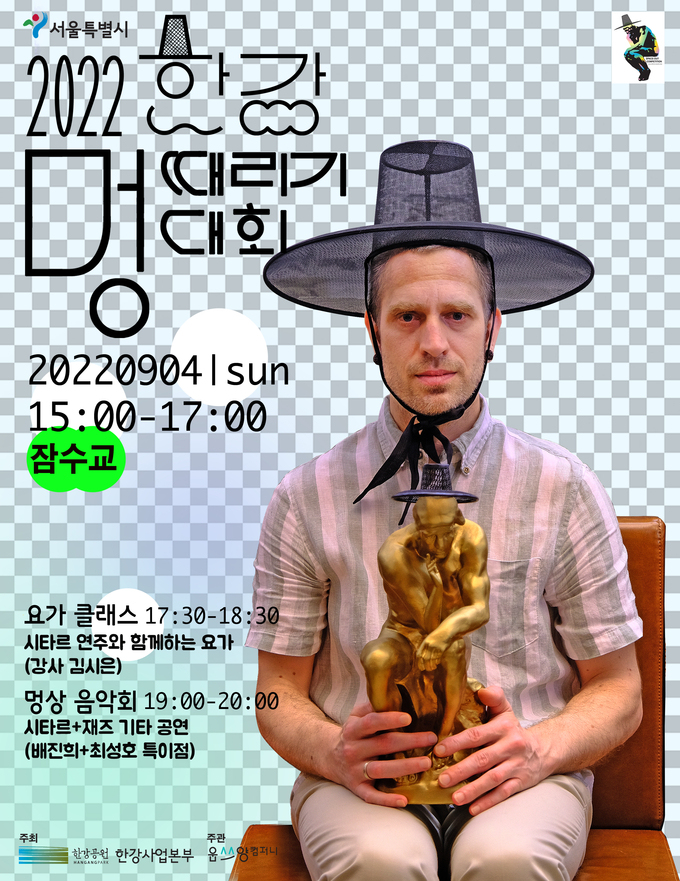 한강사업본부는 시민의 휴식처로 사랑받고 있는 한강이 ‘멍때리기’라는 행위에 가장 적합한 장소라는 점에 착안, 대회 창시자인 ‘웁쓰양’과 협업해 ‘한강 멍때리기 대회’를 개최하고 있으며 올해로 5회째를 맞는다. (2020~2021년 미개최)